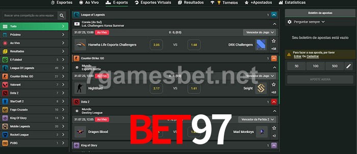 O bet97 oferece uma grande seleção de opções de apostas em e-sports com probabilidades competitivas